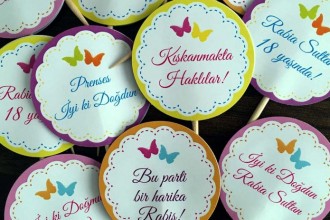 Rabia Sultan’ın 18 yaş doğum günü süslemeleri 18 yaşına giren Rabia Sultan için annesi Hayriye Hanım sürpriz bir doğum günü partisi düzenledi. Biz de onun için kelebekli, çiçekli rengarenk ürünler hazırladık. 18 yaşın tazeliğini…