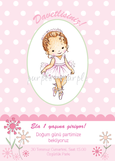 Minik balerin doğum günü davetiyesi Küçük prenseslere balerin olmak çok yakışıyor, çoook:) Mutlu bir hafta sonu geçirmeniz dileğiyle! Ürün kodu: DGDK025 Ölçüler: 12.5 X 17.5 cm