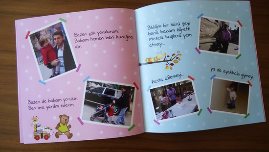 Bu sene kızım ve eşim ikinci babalar gününü kutlayacaklardı. Onlar için özel bir hediye hazırlamak istedim. İkisinin fotoğrafları benim küçük hikayelerimle birleşti ve ortaya bu şirin foto-roman kitap çıktı. Övünmek gibi olmasın, eserim beni pek mutlu etti:)