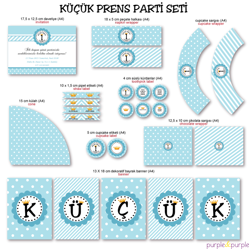 Küçük prens parti setimiz aşağıda detaylarını belirttiğimiz 9 tasarımdan oluşuyor. Tasarımların tümünü satın alabileceğiniz gibi; sadece istediğiniz tasarımları da seçebilirsiniz. Ya da bu 9 tasarım içinden istemedikleriniz yerine ihtiyacınız olan başka parti ürünü tasarımları da ekleyebilirsiniz. Her bir tasarım A4 veya A3 sayfasına en fazla adette sığacak şekilde yerleştirilip pdf dosyası formatında mail ile gönderilir.