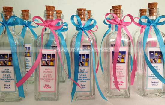 Kırklareli’nin Babaeski ilçesinde yer alan Fatih İlkokulu 1-C sınıfındaki sevgili öğrenciler için pembe ve mavi tonlarında minik şişeler hazırladık. Şişe içerisinde öğrencilerin kendi el yazıları yer alacak. Onlar şimdi ikinci sınıfa geçti bile:) Mutlu ve başarılı bir eğitim hayatı sürmeleri dileğimizle…