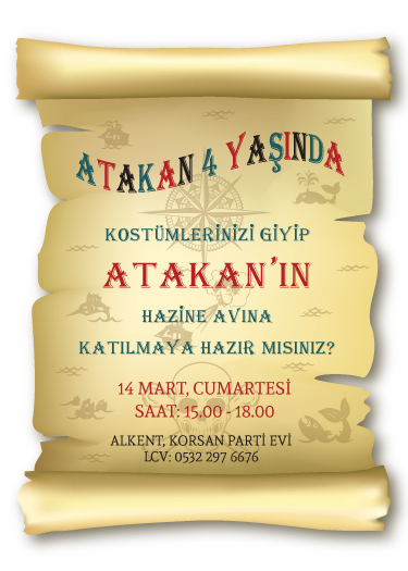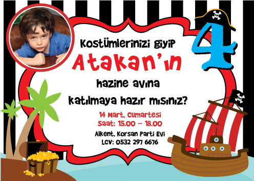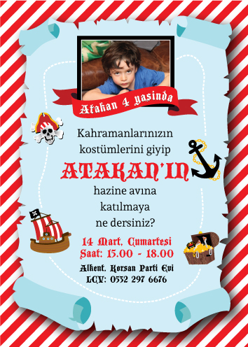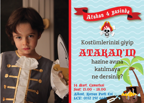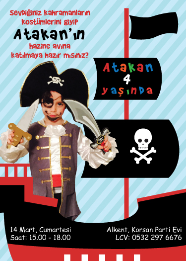 Atakan’ın doğum günü için tasarladığımız korsan temalı davetiye örneklerimiz… Partimiz çok güzel geçti. Detaylarını yakında sitemizde bulabilirsiniz. Atakan’a tekrardan nice mutlu yaşlara 🙂