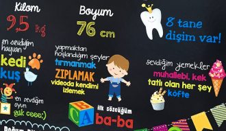 DevamıAlp’in ilk doğum günü partisi için chalkboard tarzında bir anı panosu hazırladık. Doğum bilgilerinden başlayarak 1 yaşına girerken sevdiği yemeklere, en sevdiği hayvanlardan ilk sözcüklerine…