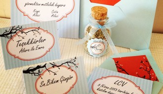 DevamıBu sefer farklı bir düğün davetiyesi ile karşınızdayız: Cam şişede düğün davetiyesi. Şişemizin içinde pembe ve sütlü kahve tonlarını kullandığımız aydıngere basılı davetiyemiz yer…